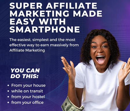 SO WHAT ARE YOU GETTING FROM THE SUPER AFFILIATE MARKETING MADE EASY WITH SMARTPHONE PROGRAM?☑️ A special training on how to earn massively with affiliate marketing on various Affiliate Marketing Platforms(These platforms will let you earn both in Naira and US dollars). worth ₦55,000☑️ A unique training on How to sell anything to anyone. Worth over ₦60,000☑️ A quick start guide that will show you how to make ₦200k without running ads. Worth over ₦55,000☑️ A graphics design training that will teach you how to design graphics like a pro.