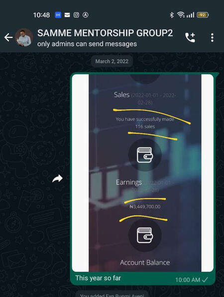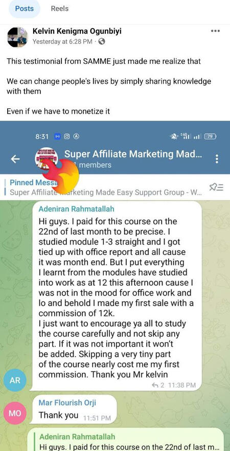 This is worth over ₦35,000☑️ You will also get access to a special training on how to get customers both online and offline. This is worth over ₦15,000☑️ The untold secret of how to build your affiliate marketing business from zero to 8 figures in 12 months. This is priceless but I will leave it at ₦250,000This special program is worth more than ₦970,000Oh! By the way, as a Bonus you will also get⤵️☑️ A lifetime access to inner circle support group where you will keep learning from the wealth of knowledge and experience of the course creator☑️ A special template that shows you how to make at least ₦200,000 in your first 30 days of Affiliate Marketing☑️ Access to monthly strategy sessions where I will be showing you different ways to make money from Affiliate Marketing and several business models.Being in this inner circle group will help you grow and scale up to greater heights in the online space. This is priceless but I'll leave it at 170k☑️ Free access to tools and software that makes your affiliate marketing journey smooth. This is worth over ₦20,000☑️Free access to at least 2 affiliate marketing platforms that can pay you in naira and US dollars and other foreign currencies☑️ Free Access to 2 highest converting sales funnelAll these and more are what you'll be learning from the Super Affiliate Marketing Made Easy with Smartphone programGet all of these for just 20k today